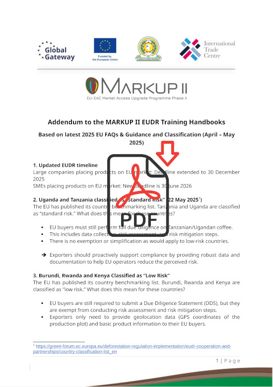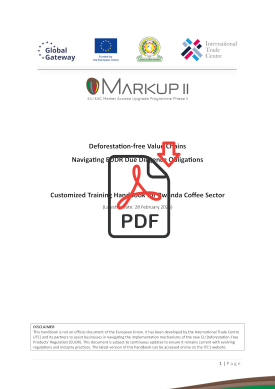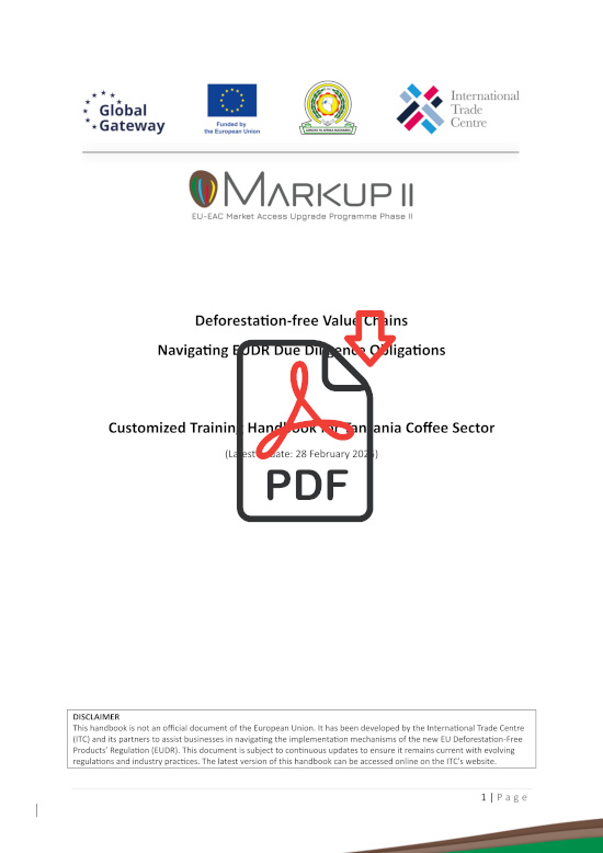 2. Technical Assistance and Resource DevelopmentTo support ongoing EUDR compliance, MARKUP develops tailored resources such as the EUDR handbook series for coffee, cocoa, and leather sectors, adapting ITC’s guides to the specific needs of East African producers.