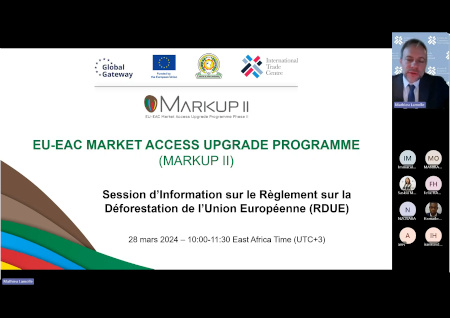 - In Kenya, Uganda, Rwanda, Burundi, and Tanzania, MARKUP supports coffee producers and exporters in understanding and applying EUDR requirements. Activities include tailored training on traceability, data collection to ensure sustainable practices that are recognized by European market importers.